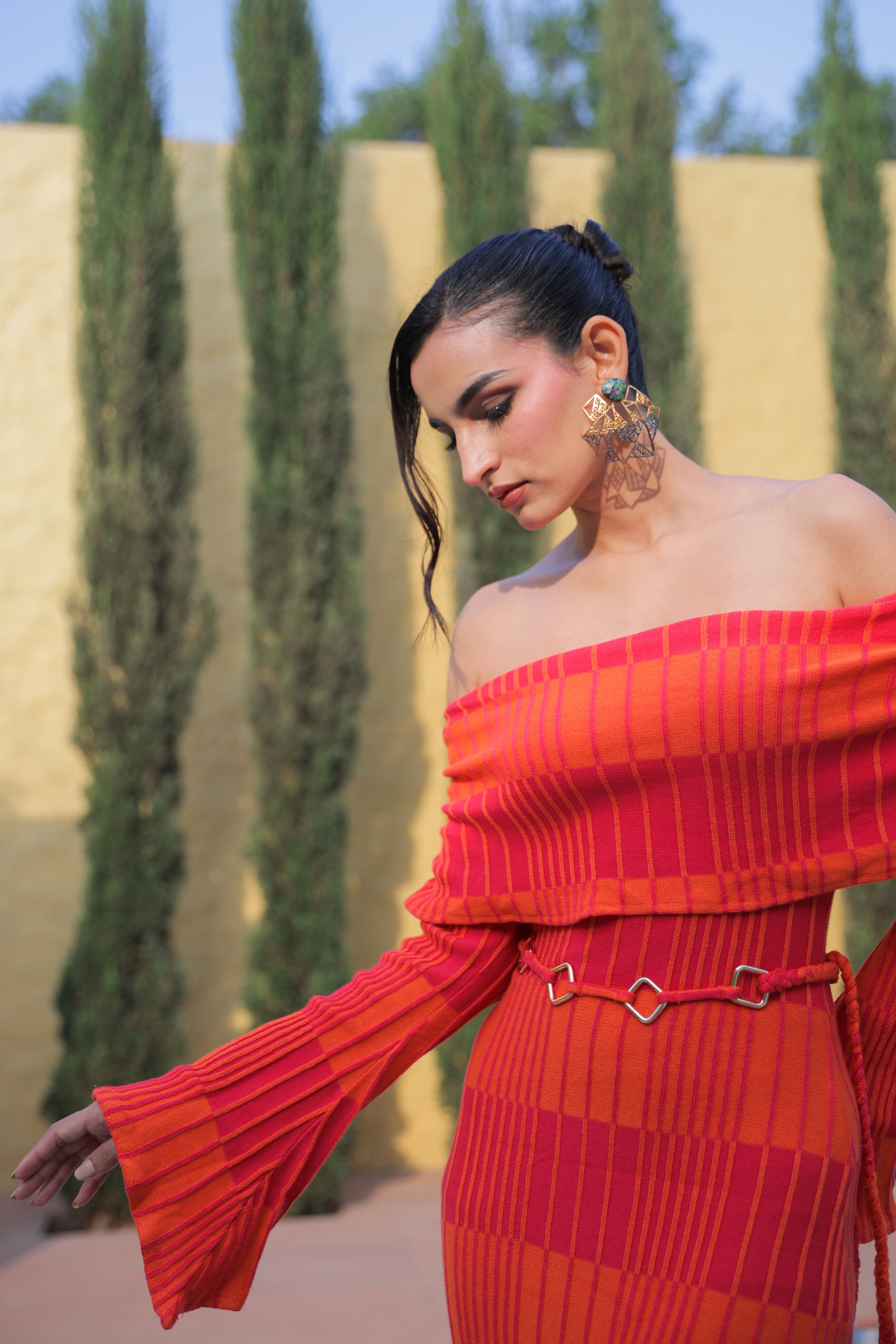 Featuring flared sleeves and a sleek body fit, it’s equal parts chic and confident.