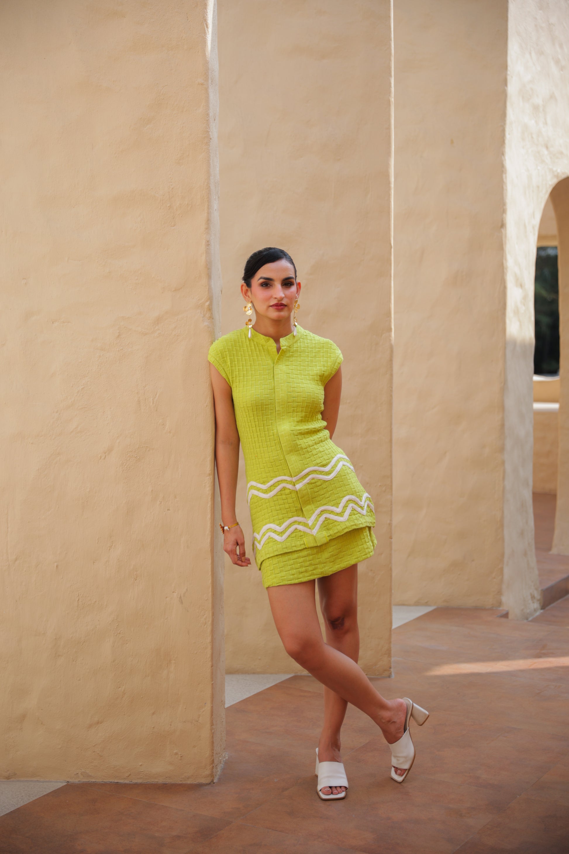 Sun-kissed and full of charm, this textured top is designed for easy summer styling. The fluid wave detailing adds a soft, sculptural feel to its flattering shape. Fresh, fun, and endlessly wearable.