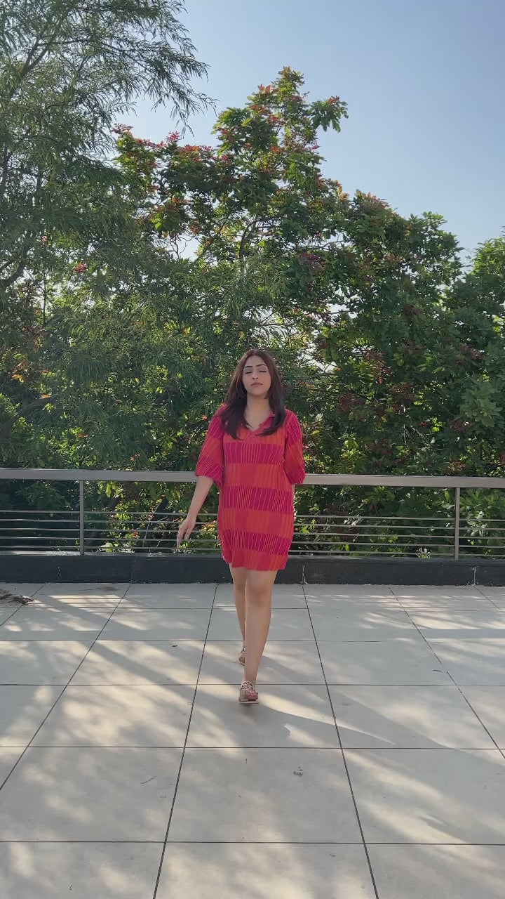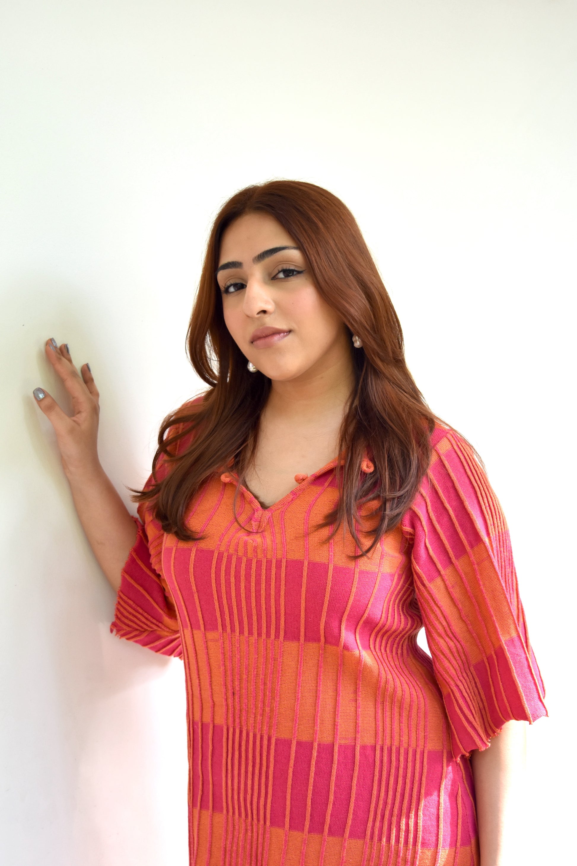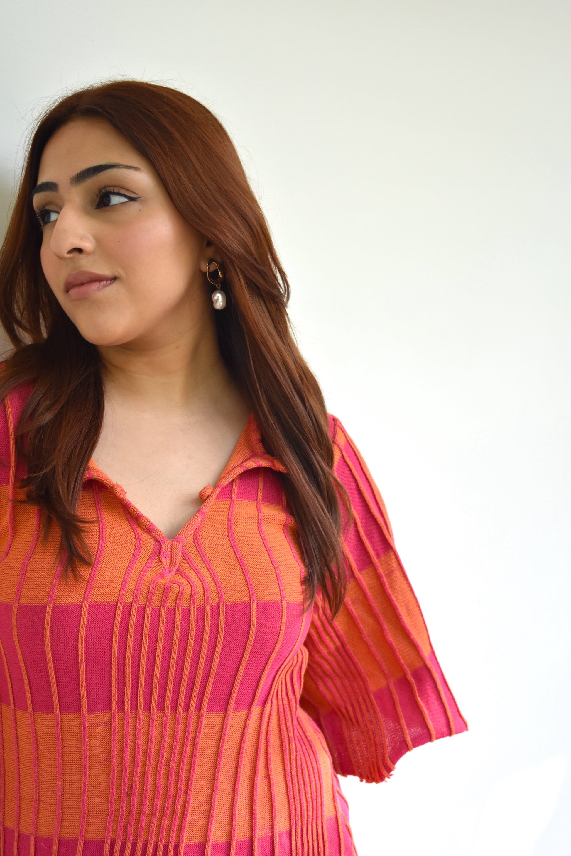 The Naomi Dress is a stylish way to keep your wardrobe versatile and breezy during the summer months. Crafted from soft, cotton fabric, this relaxed-fit dress features a unique pink and orange rib variation. With 3/4th sleeves, it's perfect for days when you want to keep cool in style.